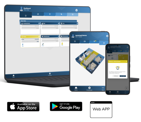 Schnelle Einrichtung - Laden Sie sich die LAROMED App für ihr Endgerät herunter oder nutzen Sie die Browserbasierte Webapp. Einfach im Browser app.laromed.com eingeben und mit ihren Anmeldedaten einloggen.