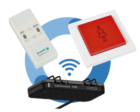 Zudem gibt es den Sensor mit einem Eldat Sendemodul, worüber sie jede vorhandene Lichtrufanlage ansteuern können.