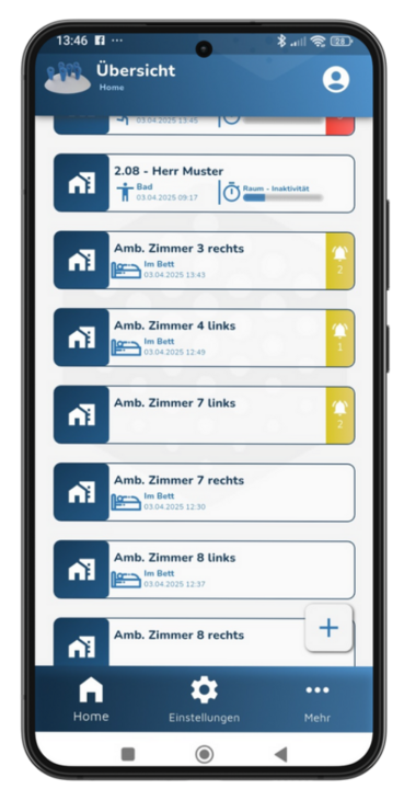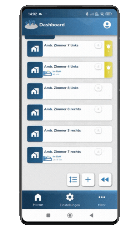 Verschaffen Sie sich einen Überblick, welcher Bewohner im Bett liegt und welcher nicht.