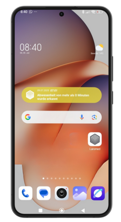 Zusätzlich zu den Push Benachrichtigungen haben Sie die Möglichkeit sich das LAROMED Widget auf ihren Homescreen ihres Mobiltelefons zu laden. Dieses Widget macht Sie umgehend und deutlich auf die jeweilige Situation aufmerksam.