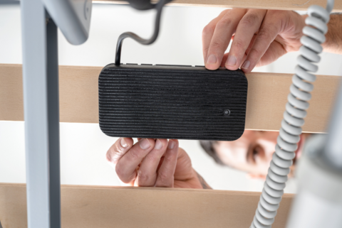 Viele Pflegebetten verfügen über eine zusätzliche Spannungsversorgung für eine Bettbeleuchtung. Die Stromversorgung kann problemlos genutzt werden um den LAROsense Sleep ONE Bettensensor zu versorgen. Ggf. ist ein Y- Stecker notwendig.